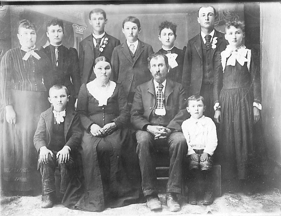 Standing l to r : Mary HAJNY, Anna McGINNIS, George, Jacob Jr., Tony McGINNIS, John, Elisabeth CONRAD Seated l to r : Martin, Mary (HRDINA) Jacob Sr., William