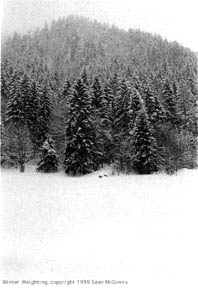 Winter Weighting, photo noir et blanc, 7 x 10,6 cm, © 1999 Sean